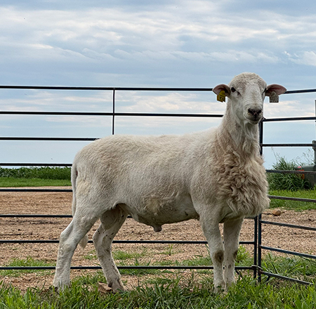 A home raised ram sired by CAG 4379 and dammed by a top EHJ 722 daughter.