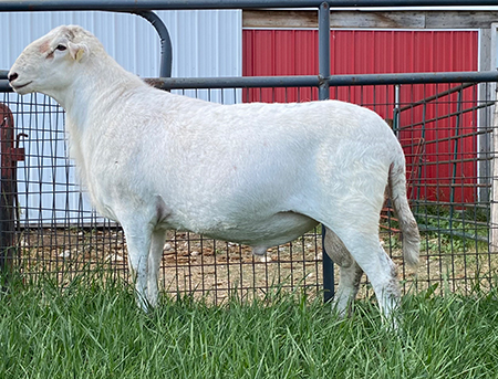 We maintain a flock of 200 ewes, of which half are registered. Our goal for our females is to make super ewes! We expect our ewes to be hands free, hardy, low maintenance sheep that thrive in all environments. To achieve this the flock consists of wide made, heavy structured, high volumed ewes with great feet and legs.